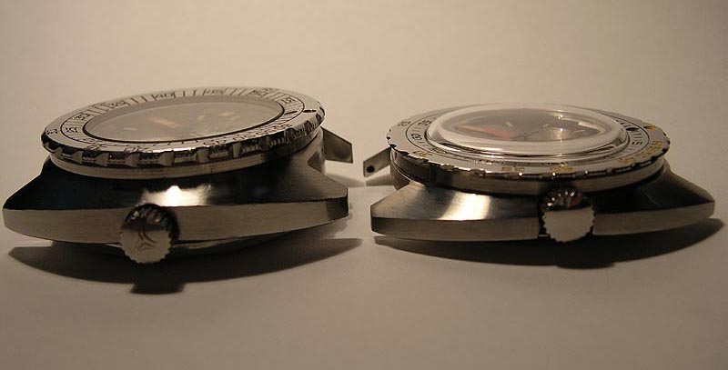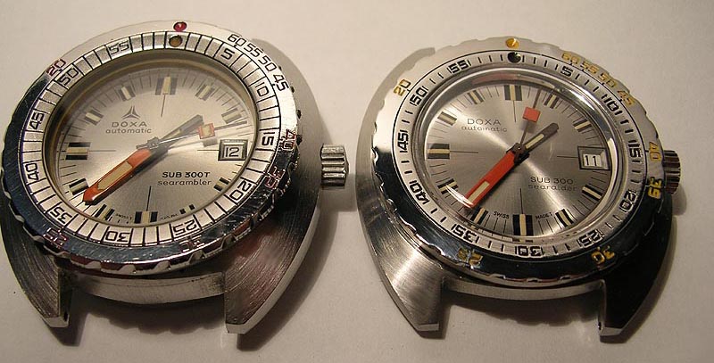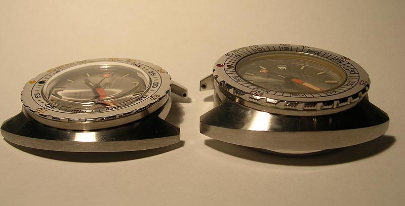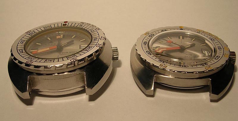 | Der folgende Bericht besteht Hauptsächlich aus Bildern da die Unterschiede zwischen den 300 und 300T Modellen bereits auf anderen Seiten beschrieben wurden. Hier erkennt man die klaren Differenzen von Gehäusegrössen, Bändern, Glas, Drehring und Zifferblatt. |