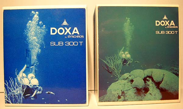 | Die Verpackungen der Doxa SUB`s sind so verschieden und nicht zu ordnen wie die Uhren selbst. In den folgenden Bildern sind einige wenige mir bekannte Verpackungen die man einigermassen zuordnen kann, jedoch wie immer ohne Gewähr. |